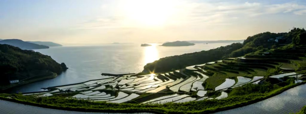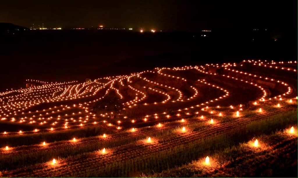 TANADA berasal dari nama salah satu tempat wisata indah yang terkenal di kota Matsuura, Nagasaki, Jepang yaitu “Doya Tanada” atau yang terkenal dengan “Doya Tanada Fire Festival” yang menyajikan keindahan ladang sawah bertingkat yang berkilau dengan cahaya matahari terbenam. Matahari tenggelam, bayangan pulau terpancar di samudera, dan kontras cantik di sawah berteras. Banyak orang menanti dari seluruh penjuru negeri untuk melihat momen “Festival Api Doya Tanada”, sawah bertingkat yang diterangi sekitar 3.000 lentera saat matahari terbenam, menciptakan pemandangan magis.